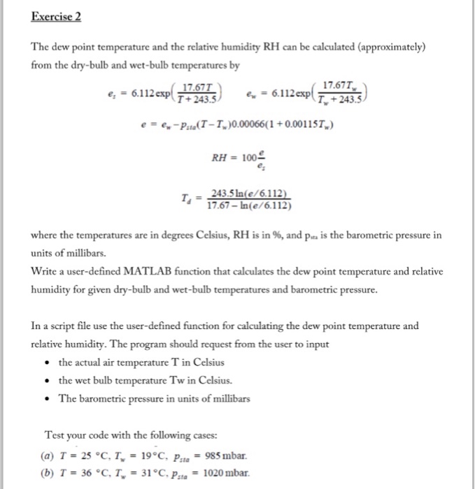 To calculate relative humidity in percent hereinafter denoted as rh from dry bulb temperature t and wet bulb temperature t w one can use a well known set of forward analytical psychrometric equations bohren and albrecht 1998.